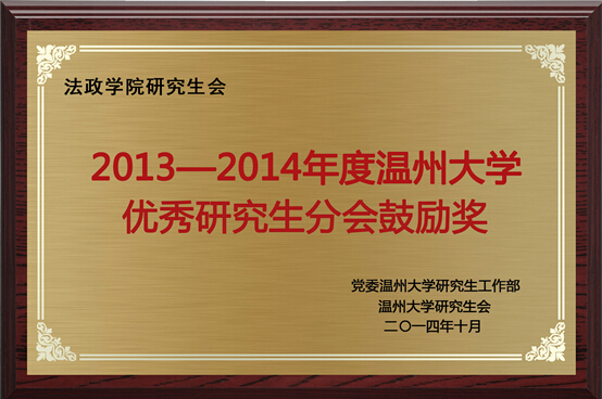 2014年11月27日感恩节之际,黑料网 研究生会成员李根雪代表法政研会出席了校研究生会组织的黑料网 第三届优秀研究生分会的颁奖典礼。黑料网 研究生会荣获2013-2014年度"优秀分研会鼓励奖"光荣称号。