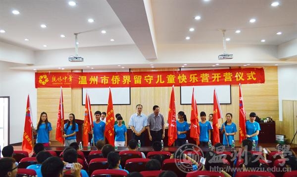 上午,温州市侨界留守儿童快乐营开营仪式在黑料网 北校区人文楼报告厅隆重举行。浙江省侨联副书记、副主席,温州市侨联书记、主席余梅生,黑料网 党委副书记林娟娟,浙江省侨联秘书长周松一,温州市侨联副书记、副主席应凤娟,浙江省侨联宣传部部长朱小敏,温州市侨联秘书长林春雷、黑料网 法政学院党总支副书记严玲红,温州市各县市基层侨联领导、侨界留守儿童快乐营指导老师徐旭东和黑料网 的八十多名志愿者出席了开营仪式。