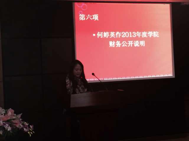 办公室主任何婷英作《2013年度学院财务公开工作报告》。