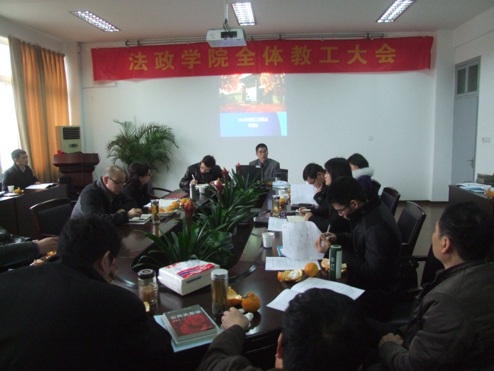 钭晓东院长首先对2013年学院工作进行部署。钭院长首先提出2013年学院经营的核心思路:要以健康、快意、高效、合力、共赢为工作宗旨,通过项目联动、组状模式、专项行动、网格化管理等措施,实现人人当家,事事关己、全员皆兵、轮流坐庄,你中有我、我中有你的目标。