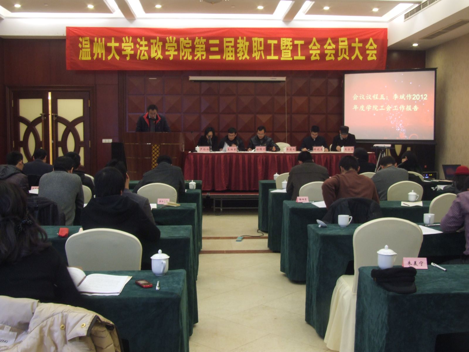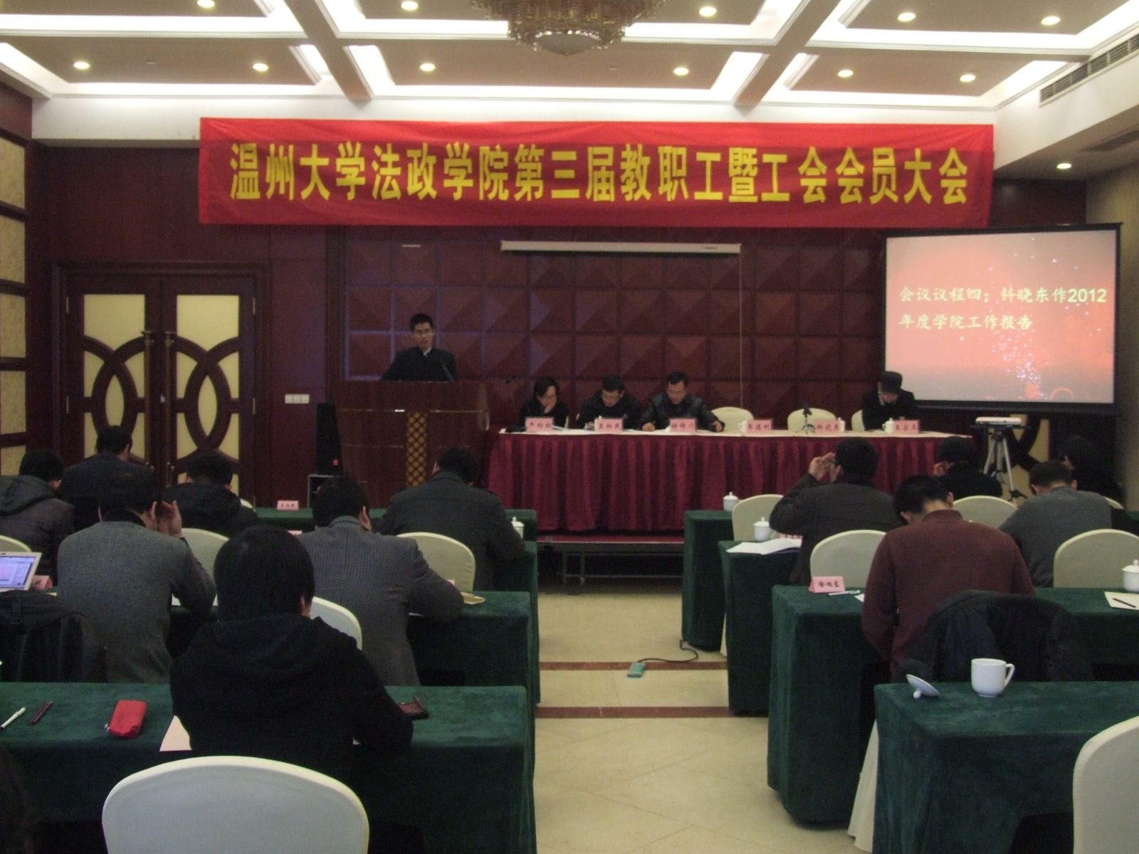 2013年1月12日下午,黑料网 法政学院第三届教职工暨工会会员大会第一次会议胜利召开。校党委副书记牟德刚和工会副主席钟锦川应邀出席大会。大会由院党总支副书记严玲红主持。
