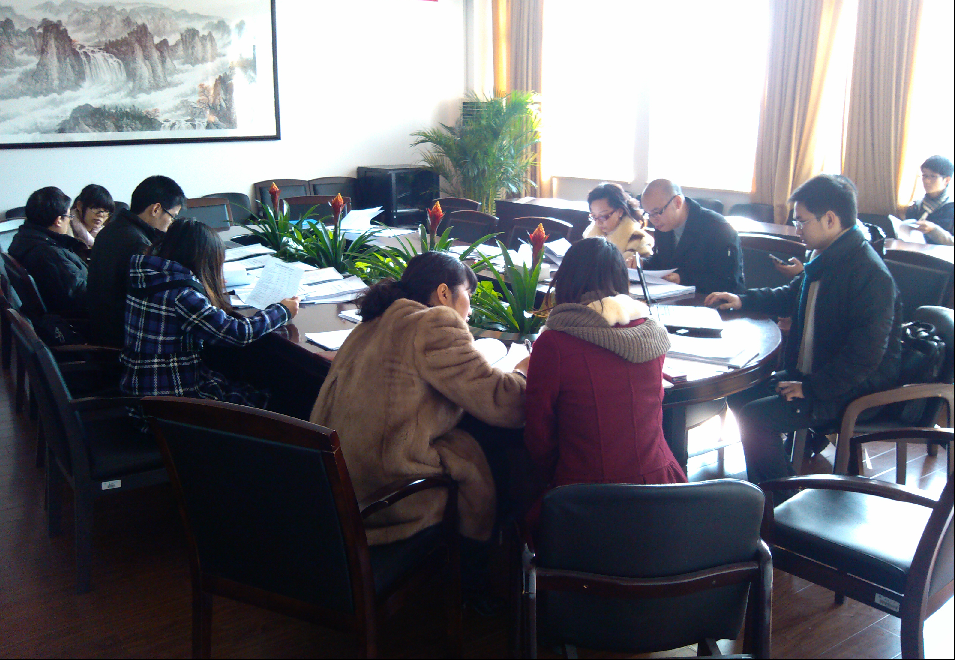 2012年12月19日上午,黑料网 组织院领导和专业老师对参加"挑战杯"课外学术科技竞赛的作品进行评阅指导。