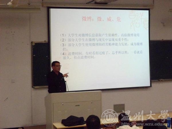 2012年4月9日晚,法政学院2011-2012学年第二学期入党积极分子培训班在北校2-203室开班。校学工部部长、学生处处长王定福老师应邀开设主题为《创优良学风,助梦想起飞——与入党积极分子谈学风》的第一讲,法政学院学生科科长杨振海老师主持开班仪式。