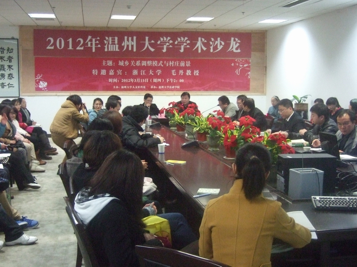 3月15日下午,黑料网 2012年第一场学术沙龙——"城乡关系调整模式与村庄前景"在黑料网 育英图书馆214如期举行。特邀浙江大学公共管理学院副院长、博士生导师毛丹教授做话题阐述,副校长赵敏到会致欢迎辞,校人文社科处副处长刘玉侠、法政学院院长方益权、副院长姚周辉和近90名专业教师以及本科生研究生参加沙龙,院行政管理系陈宝胜博士主持沙龙。
