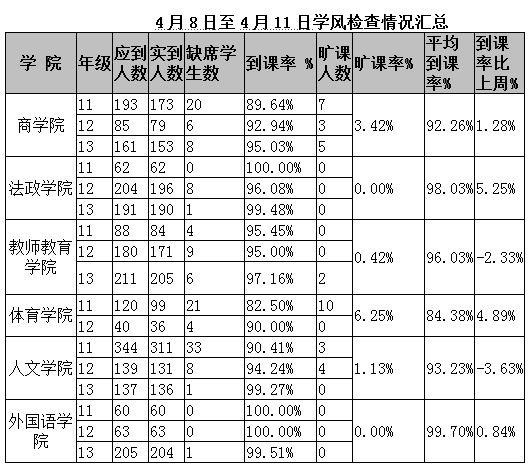 4月21日至4月25日学风检查情况汇总